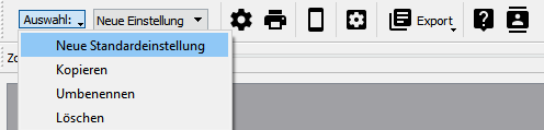 Neue Standardeinstellung: Fügt eine neue Einstellung mit den Standardvorgaben des aufrufenden Programmes ein.